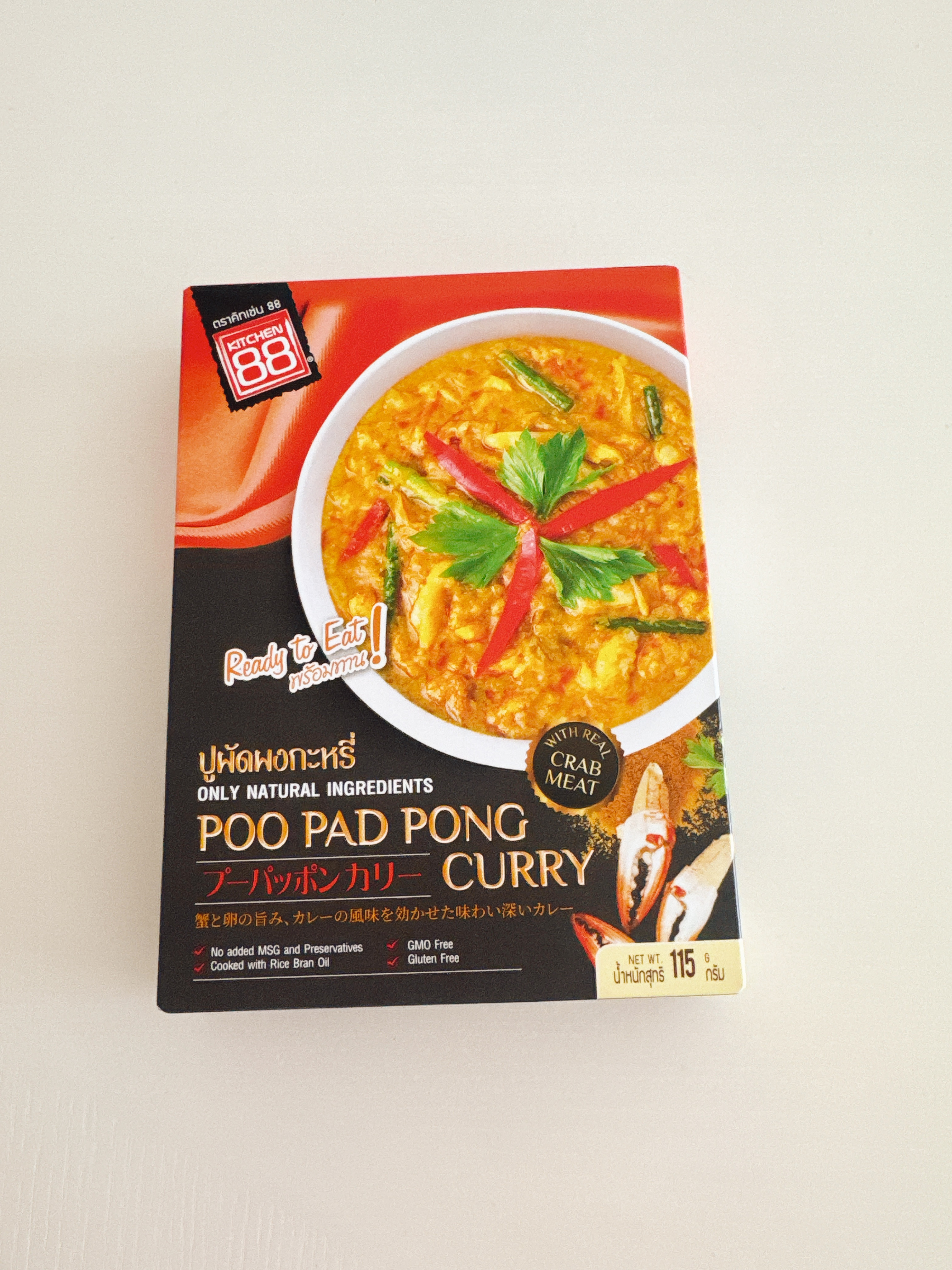 蟹やソフトシェルクラブチリインオイル(甘辛味噌油)、カレーパウダーなどで炒めて、溶き卵でふんわりととじた主にタイで食べられているプーパッポンカリー。食べた事がない海外メニューで、話題になっているものは、カルディか無印良品でだいたい売ってます♪こちらは少し前にカルディで購入、蟹を使うメニューは、家庭ではなかなか敷居が高いですが、お手軽でなかなか美味しかったです♪